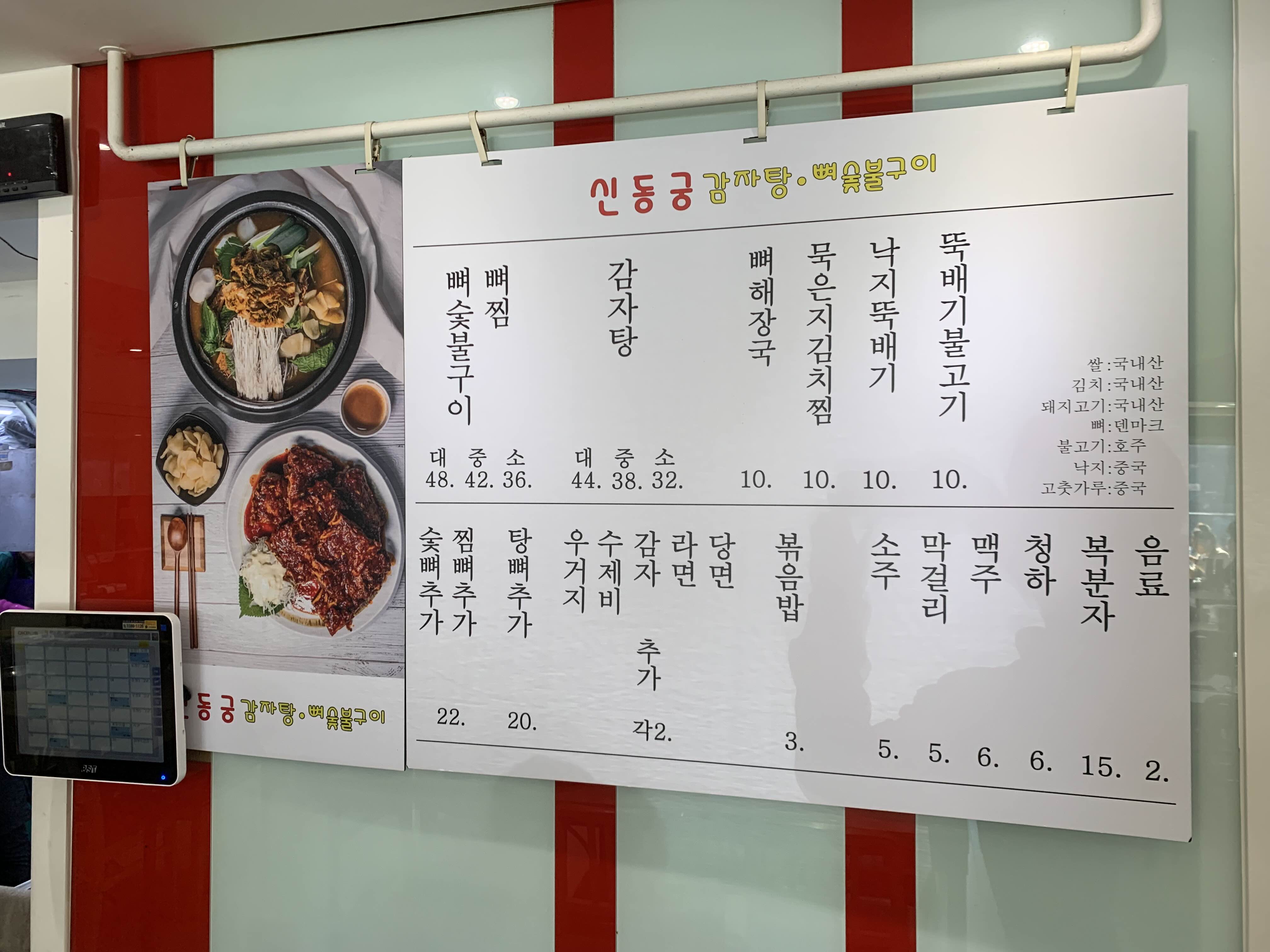 신동궁감자탕의 메뉴입니다
