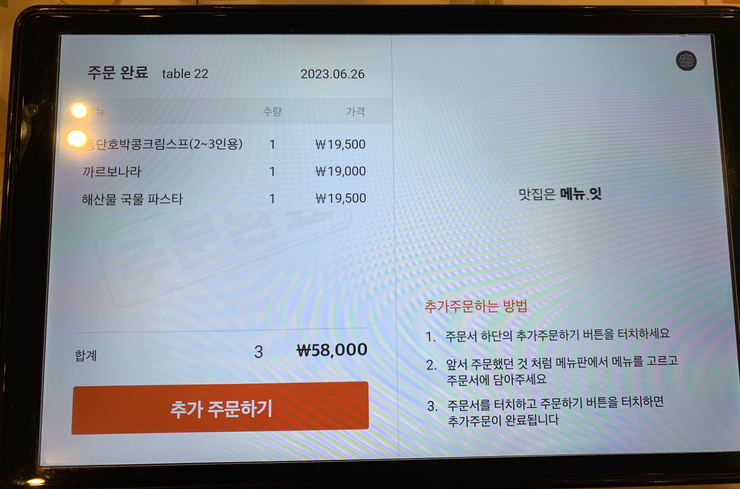 주문은 자리마다 태블릿이 놓여 있고
