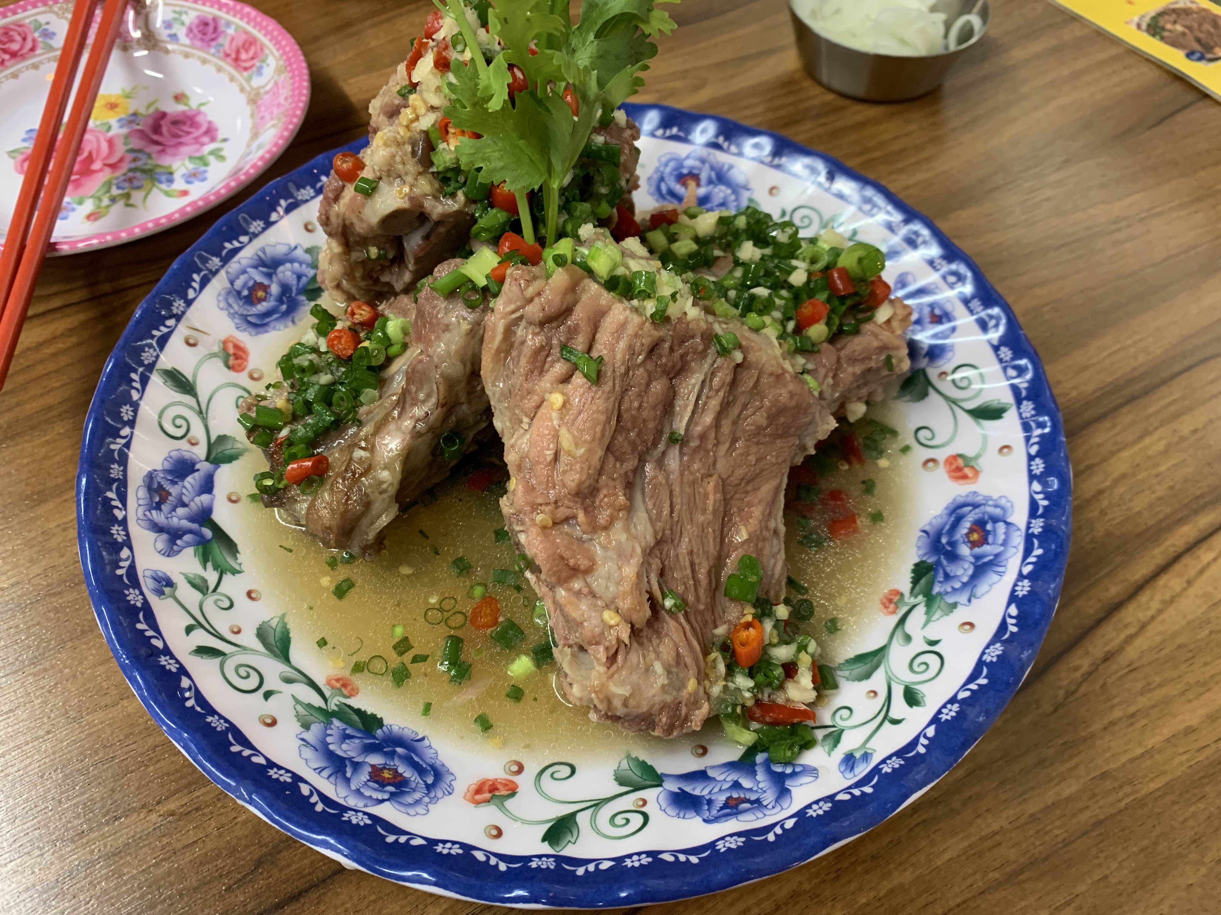조리된 등뼈가 담겨 있는 음식이에요
