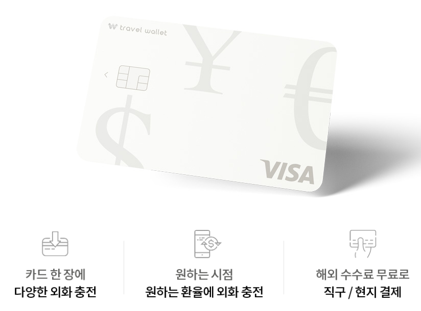 일반 해외 신용카드는 환전수수료, 사용수수료가 붙는 반면 환전하는데 드는 비용만 드는 완전 다른 개념의 카드라고 보시면 됩니다!!