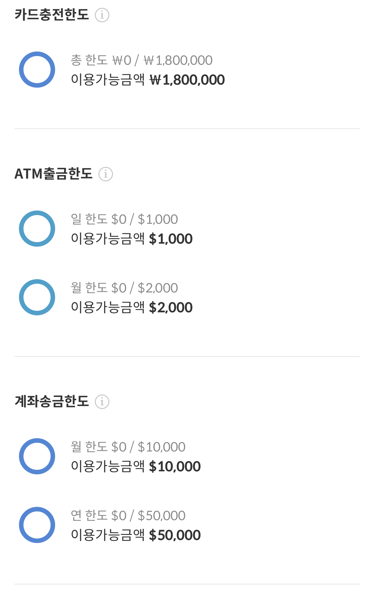 - 충전, 결제 한도에는 제한 X, 연간 최대 미화 10만 불