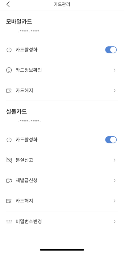 마지막으로 실물카드의 경우 분실 했을 경우