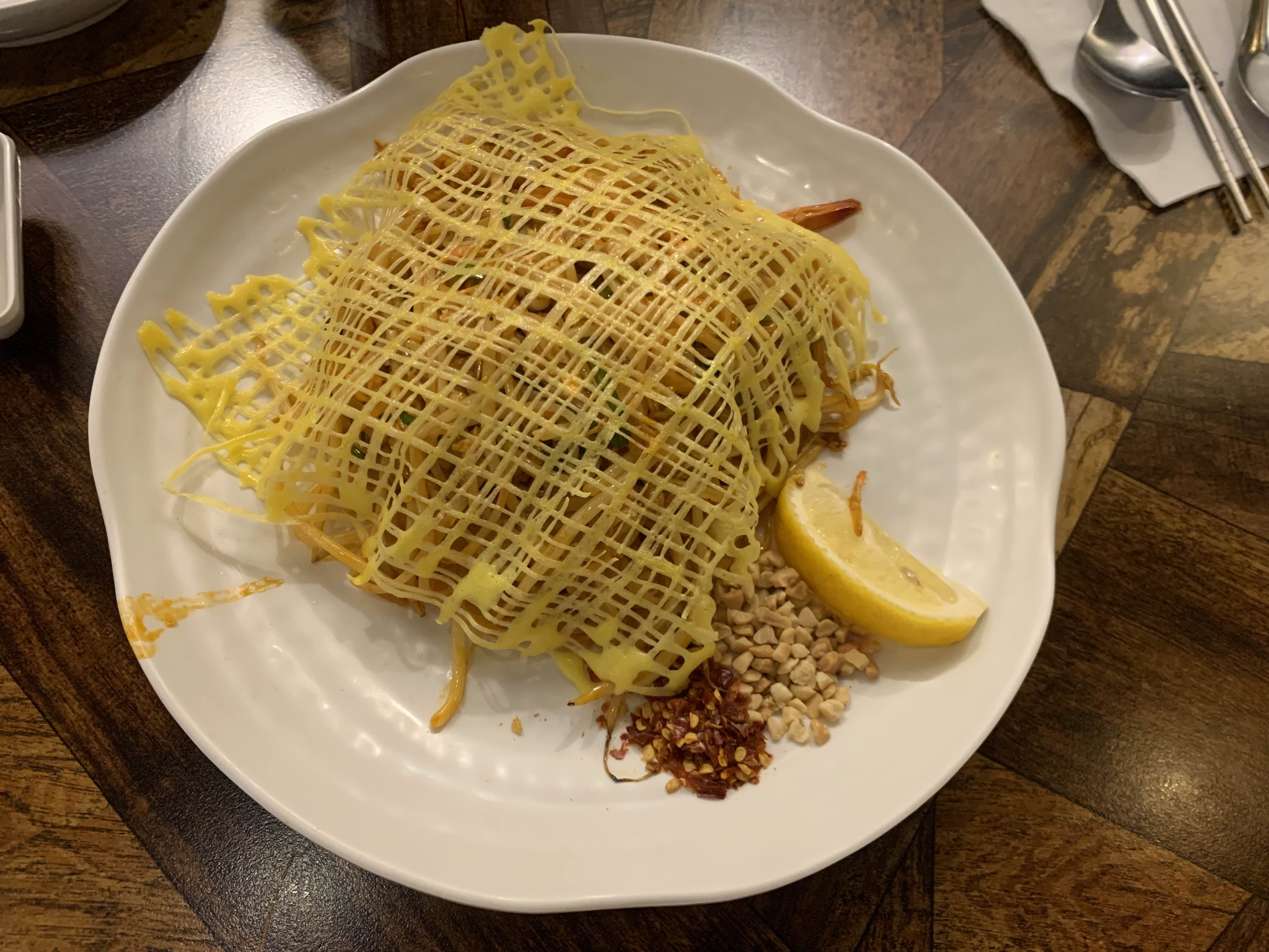 팟타이 위에 달걀지단이