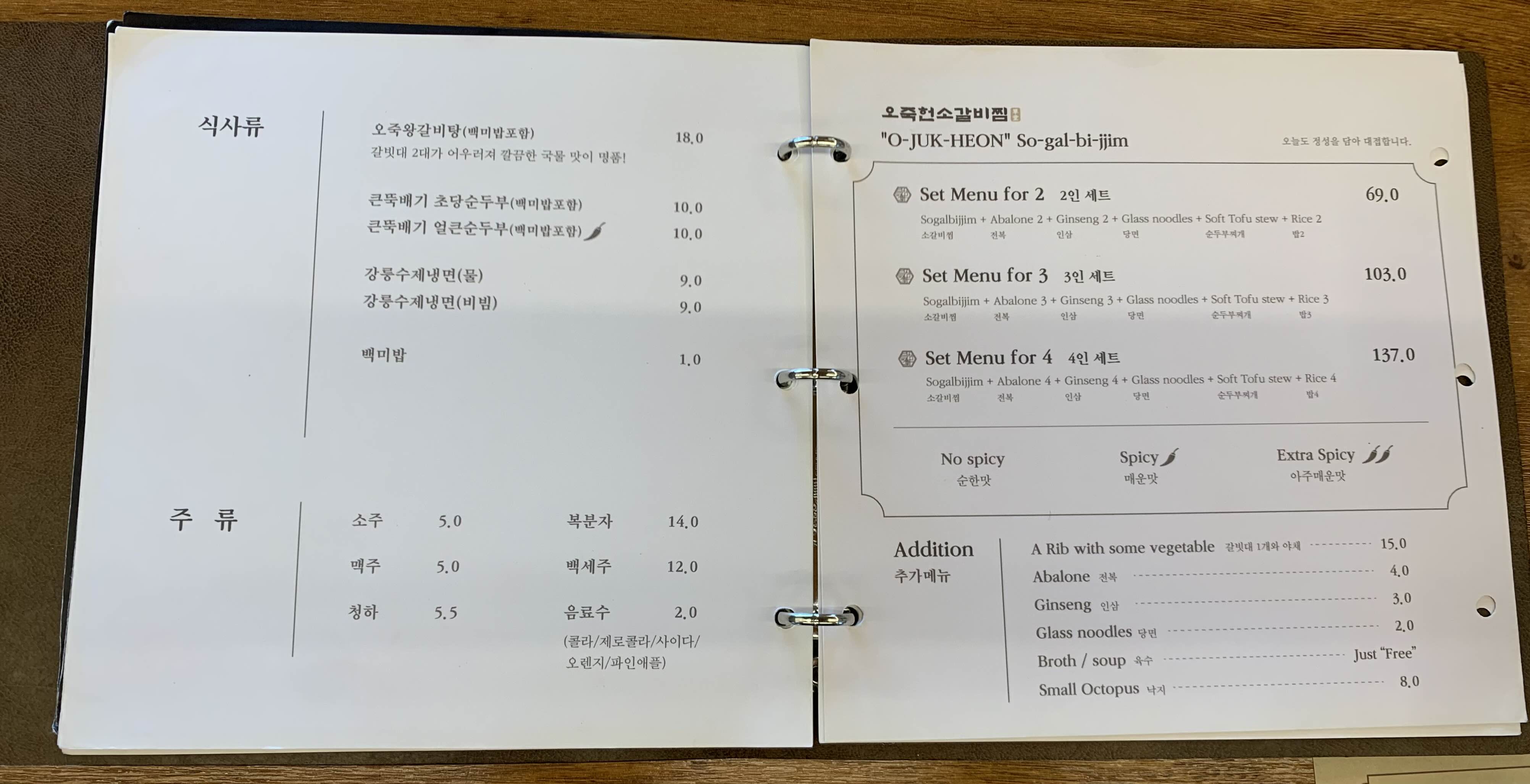 자세히 적혀있으니 정식 한글 메뉴판도