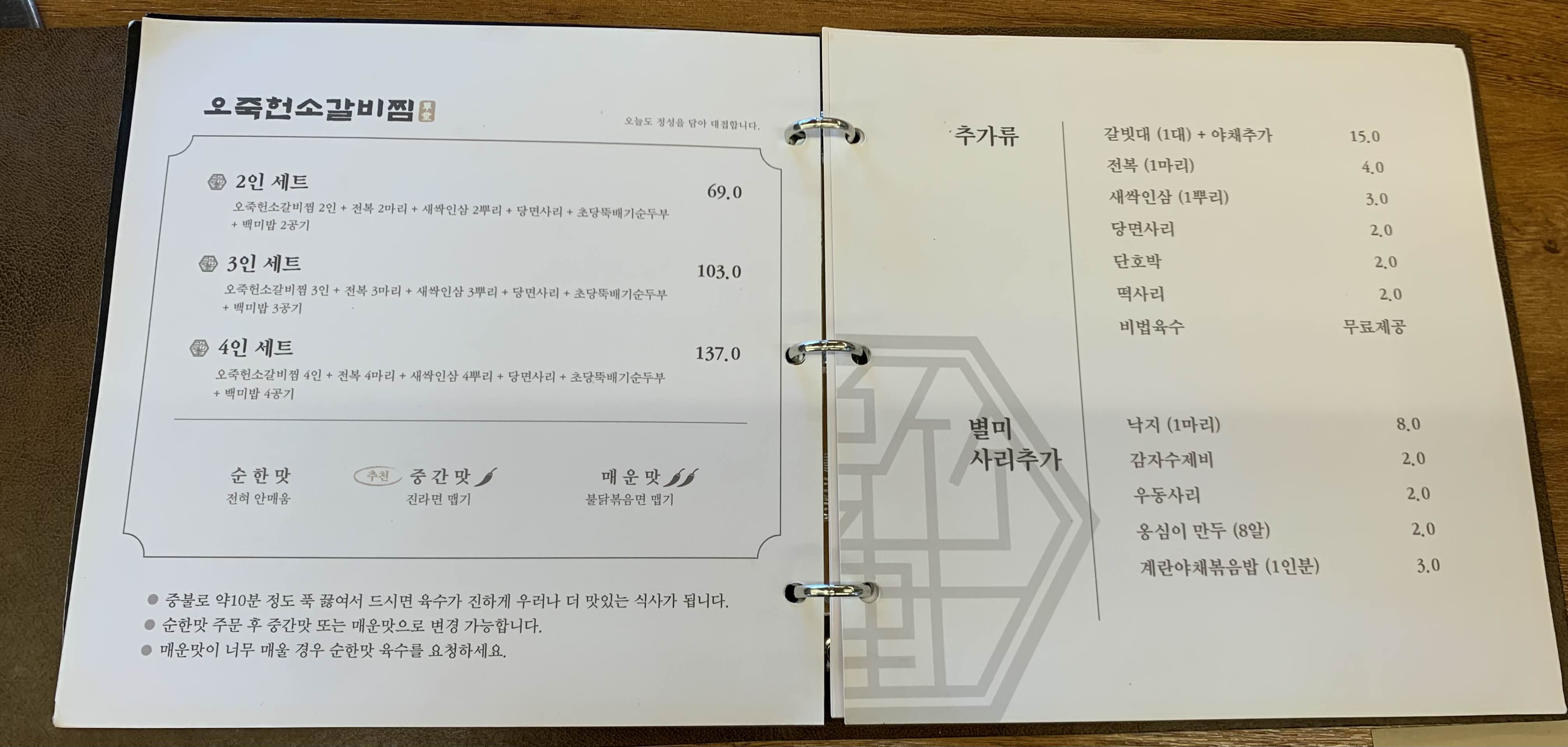 오른쪽의 오죽헌소갈비찜의 메뉴인